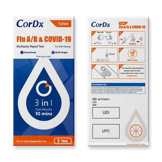 CorDx Tyfast Flu A/B & Covid-19 Multiplex Rapid Self-Test, 3-in-1 ART Kit